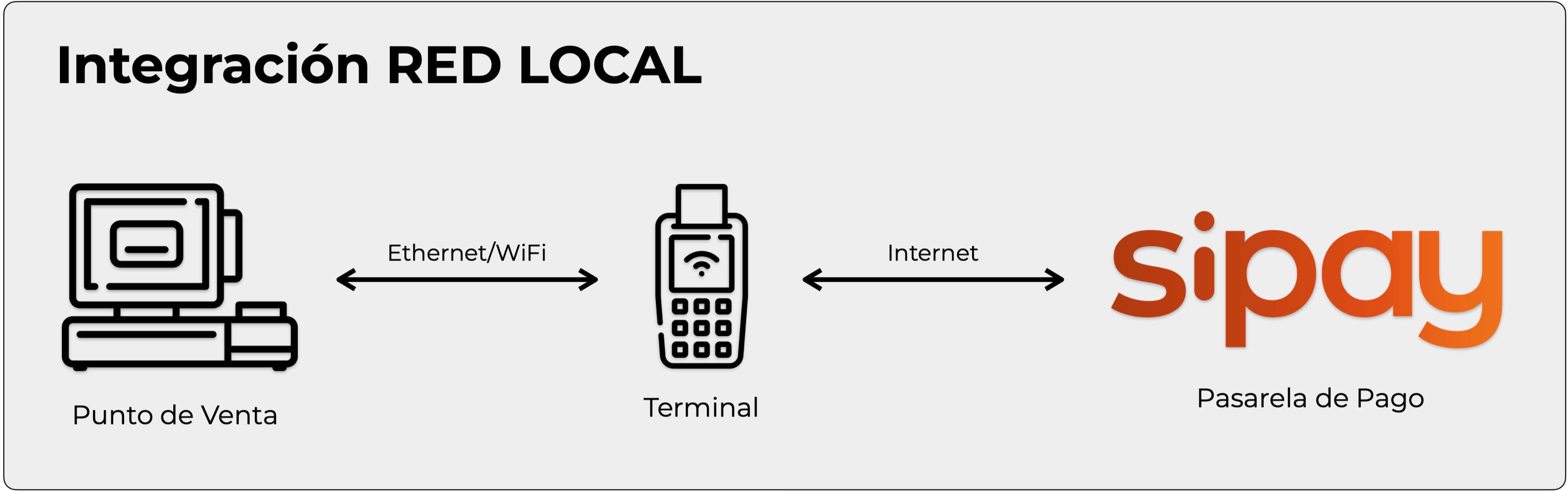 El modo local está diseñado para comercios donde el sistema POS (punto de venta) y el terminal de cobro comparten la misma red local. Esta configuración ofrece la máxima velocidad de comunicación y es ideal para establecimientos con infraestructura de red unificada.
